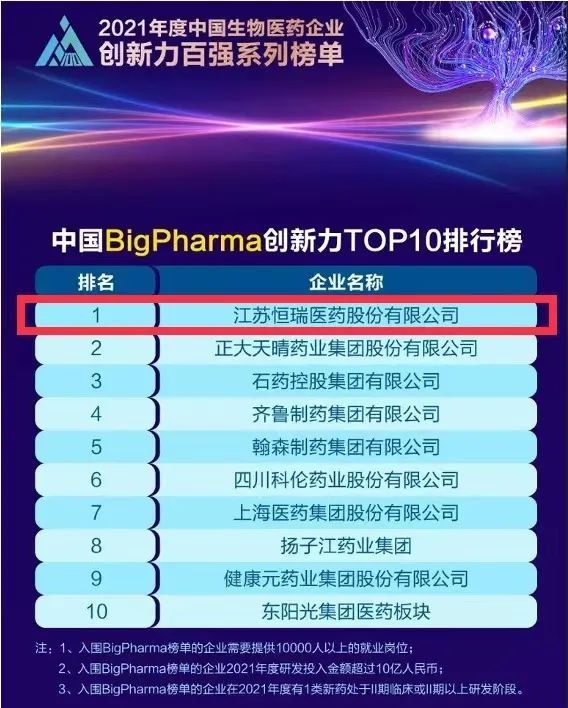 9月16日,由米内网主办的“2021年度中国生物医药企业创新力百强系列榜单”发布会在线上举办。AG尊龙凯时医药继去年登顶“中国BigPharma企业创新力TOP10排行榜”后,今年再次名列该榜单首位。